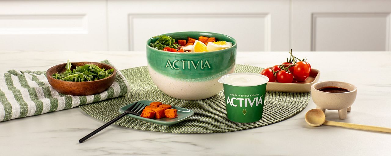 - In einer kleinen Schüssel Activia und Chipotle-Paste nach Belieben vermischen. Mit einem Löffel in die Schüssel geben, mit den gekochten Eiern garnieren und servieren.